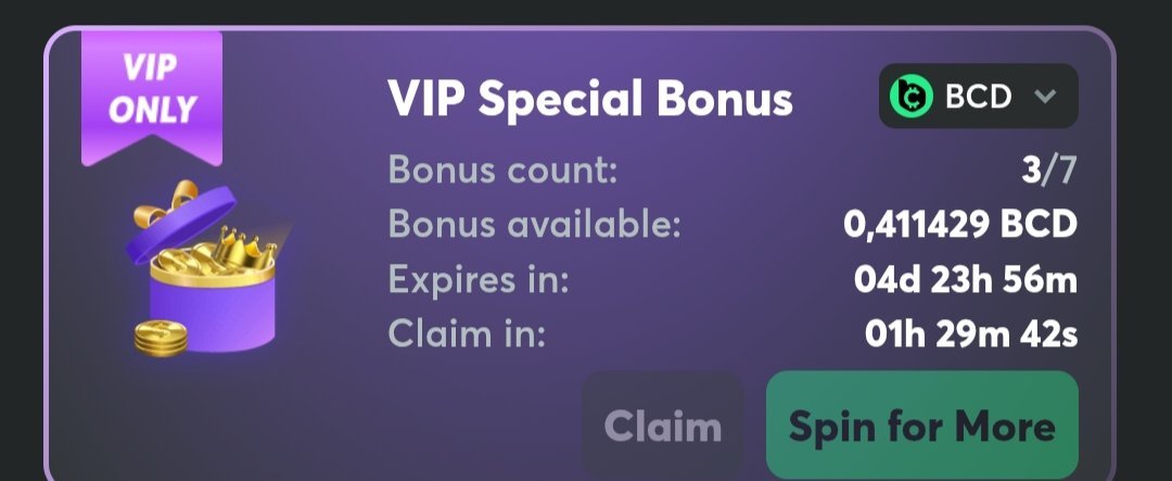 Get 4.23 BCD for FREE, valid for all VIP levels, fast & easy, no deposit required. Complete a few simple steps HERE and receive the bonus instantly -